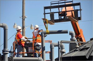 The Air Force Real Property Agency marked a major achievement in the groundwater cleanup program at the former Castle Air Force Base this month by dismantling a groundwater treatment plant that is no longer needed. Built in 1994, the Operable Unit (OU) 1 plant, located on the southeast side of the